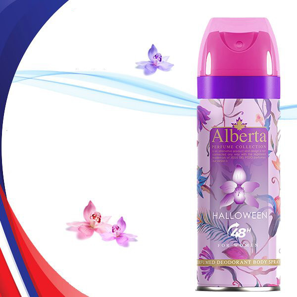 محصول فوق اسپری خوشبو کننده بدن آلبرتا 200 میل زنانه با رایحه Halloween می باشد . ماندگاری این اسپری 48 ساعت میباشد و این بدان معناست که میتوان پس از گذشت یک روز عطر و رایحه آن را بر روی لباس و بدن خود احساس نمایید. این محصول با اسانس قوی بدن و فضای محیط را خوشبو میکند . این اسپری ها در تماس با سطح پوست هیچ حساسیت و عوارضی نداره. این اسپری را از فاصله 15 تا 20 سانتی متری به بدن و لباس خود و یا محل مورد نظر اسپری کنید.