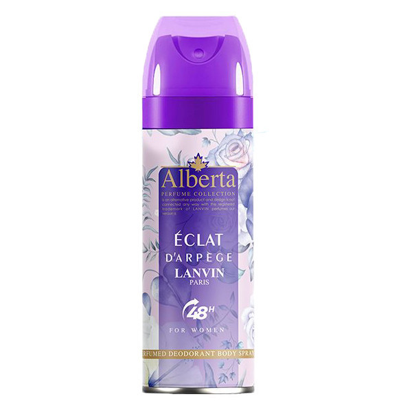 محصول فوق اسپری خوشبو کننده بدن آلبرتا 200 میل زنانه با رایحه ECLAT D'ARPEGE -LANVIN می باشد . ماندگاری این اسپری 48 ساعت میباشد و این بدان معناست که میتوان پس از گذشت یک روز عطر و رایحه آن را بر روی لباس و بدن خود احساس نمایید. این محصول با اسانس قوی بدن و فضای محیط را خوشبو میکند . این اسپری ها در تماس با سطح پوست هیچ حساسیت و عوارضی نداره. این اسپری را از فاصله 15 تا 20 سانتی متری به بدن و لباس خود و یا محل مورد نظر اسپری کنید.