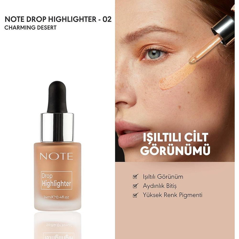 دراپ هایلایتر مایع نوت با بافت سبک و فاقد چربی خود به آسانی و به طور یکنواخت بر روی پوست پخش شده و درخشندگی زیبایی به پوست میبخشد و به محو شدن عیوب کوچک کمک میکند. با ترکیب این محصول با کرم پودر فوق العاده نوت میتوانید ظاهری شفافتر و کمی درخشندگی بر روی پوست خود ایجاد کنید. به طور کلی برای پوستهای تیره متوسط تناژ رنگ صورتی و هلویی و برای پوستهای تیرهتر رنگ طلایی مناسب است تا جلوه طبیعی به پوست ببخشد.