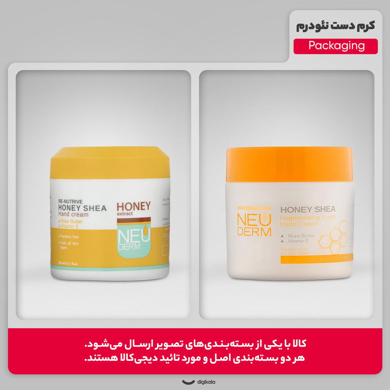 پوست دست همواره در معرض آسیبهای محیطی قرار دارد و دچار مشکلاتی مانند خشکی، پوسته پوسته شدن، زبری و ... میشود. برای رفع این مشکلات شما باید از محصولات مراقبتی مخصوص پوست دست، مانند کرم دست عسل نئودرم استفاده کنید. کرم دست عسل نئودرم دارای بافتی سبک بوده و به دلیل جذب سریع برای استفاده روزانه شما مناسب است. این محصول حاوی عصاره عسل، شیباتر و ویتامین E و گلیسیرین بوده، به همین دلیل رطوبت پوست شما را به خوبی تأمین کرده و موجب نرمی و لطافت آن میشود