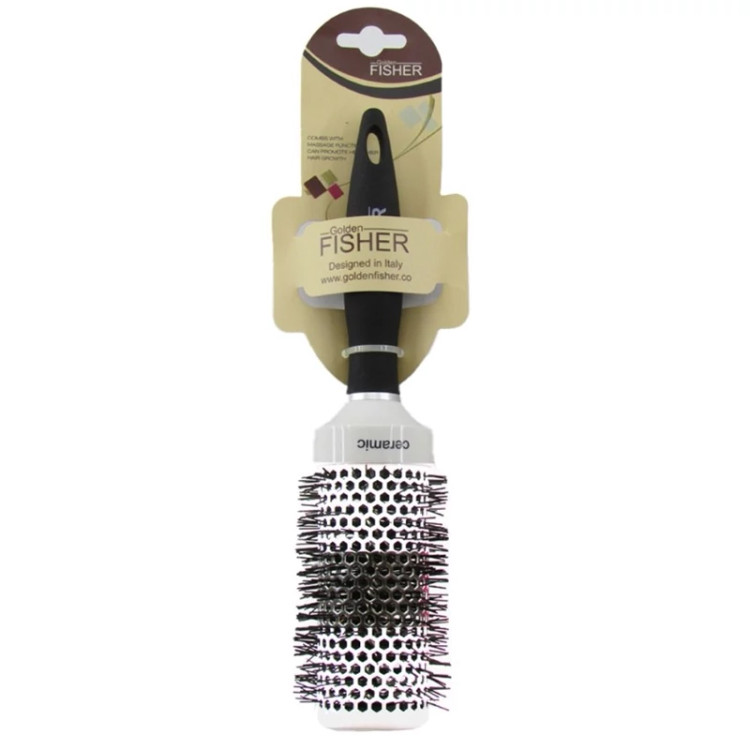 برس مو گرد گلدن فیشر سرامیکی سایز ۴۴ GOLDEN FISHER Round Hair Brush دارای دانه های پلاستیکی باریک بدنه سرامیکی با خاصیت ماساژ سر و بهبود رشد مو مقاوم در برابر گرمای سشوار فوق العاده سبک و خوشدست مناسب برای انواع موهای رنگ شده و آسیب دیده حالت دهنده قوی قطر سری: 44 میلیمتر طراحی ایتالیا مناسب سالن ها