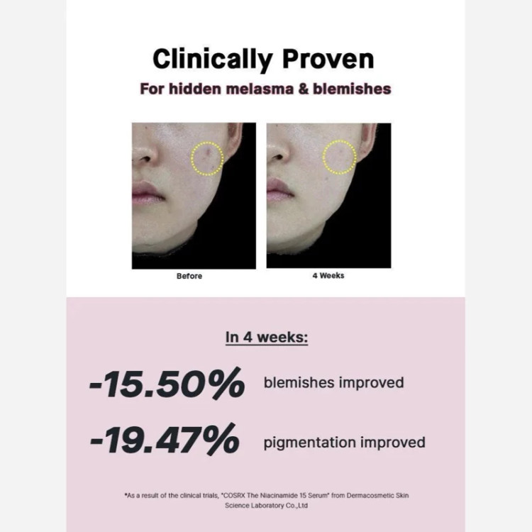 🔰 توضیحات کامل محصول را در این قسمت ببینید 🔰 ⭕️مشخصات محصول⭕️ ✔️ محصول کره جنوبی 🇰🇷 ✔️حجم: 20 میل ✔️تاریخ انقضا: 2026/10/19 ✔️ جعبه دارد 🤍این محصول یک سرم ضد جوش و روشنکننده تخصصی از برند کوزارکس و با عملکردهای اصلی زیر است : ⚔️کمک به رفع و کنترل مشکلات پوستی مانند جوش و اکنه، کنترل میزان چربی پوست و سایز منافذ ✨روشن کنندگی و یکدستکنندگی تناژ پوست 🪄کمک به رفع انواع لکهای پوستی ، جای جوش و پیگمنتهای اضافی ⛑ احیاکنندگی ، شفاف و شاداب کنندگی پوست های کدر و خسته 🔮افزایش سطح سلامت پوست ، کاهش سطح استرس اکسیداتیو و جلوگیری از آسیبهای ناشی از رادیکالهای آزاد با ترکیبات آنتیاکسیدان 🌊 مرطوبکنندگی و کمک به حفظ رطوبت پوست به مدت طولانی ➖➖➖➖➖➖➖➖➖➖➖➖ 🔐اصلیترین ترکیبات موجود در این محصول عبارتند از : ✨15% درصد نیاسینامید (ویتامین B3) : با خواص روشنکنندگی ، از بین بردن لکهای پوستی ، یکدستکنندگی تناژ پوست ، افزایش سلامت پوست و کنترل مشکلات پوستی 🧫استیل گلوکوزامین : N-Acetylglucosamine(NAG)) در هم افزایی با نیاسینامید عمل می کند تا به طور موثری پیگمانتاسیون و لک را محو کند. 💥زینک Zinc PCA : با خاصیت ضدپیری ، افزایش خاصیت ارتجاعی پوست ، کنترل چربی پوست 🛡 آلانتوین: با خاصیت تسکیندهندگی ، تقویت سددفاعی و مرطوبکنندگی پوست 🤍 توکوفرول (ویتامین E) : با اثر آنتیاکسیدانی ، تسکیندهندگی ، مرطوبکنندگی و جلوگیری از پیری زودرس پوست 🪴و ترکیبات مفید دیگر ... ➖➖➖➖➖➖➖➖➖➖ 💧دارای بافت شفاف و سبک ، زود جذب و بدون ایجاد احساس چسبندگی روی پوست ❌ فاقد هرگونه ترکیب شیمیایی مضر و حساسیت زا با لیست ترکیبات کاملا سبز ➖➖➖➖➖➖➖➖➖➖ 👩🏻مناسب برای استفاده از پوست مستعد آکنه (غیر کومدوژنیک) - 45.27 درصد بهبود غدد سباسه فعال - 48.07 درصد بهبود مقدار سنتز چربی - 42.72 درصد بهبود تعداد جوش های سرسیاه - 50.5 درصد بهبود تعداد جوش های سر سفید 50. درصد بهبود (ملاسما و لک های پنهان) - 19.47 درصد بهبود رنگدانه (ملاسما و لک های قابل مشاهده) - 2.59 درصد بهبود رنگ پوست سه گانه (روشنایی) - 24.89 درصد بهبود رنگ پوست سه گانه (قرمزی) - 11. بهبود رنگ پوست با رنگ سه گانه (زردی) *بر اساس کارآزمایی بالینی 20 نفر. *شرکت آزمایشگاهی علوم پوست درماکوسمتیک COSRX 15% Niacinamide Face Serum 20 ml
